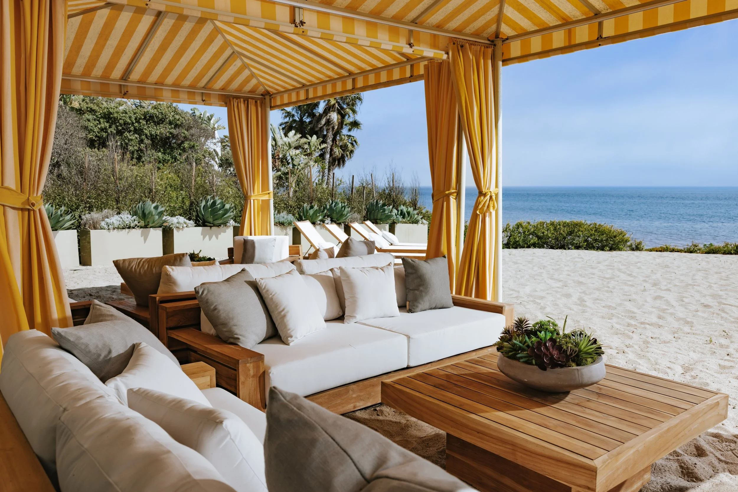Cabanas at a pristine private white sandy beach.